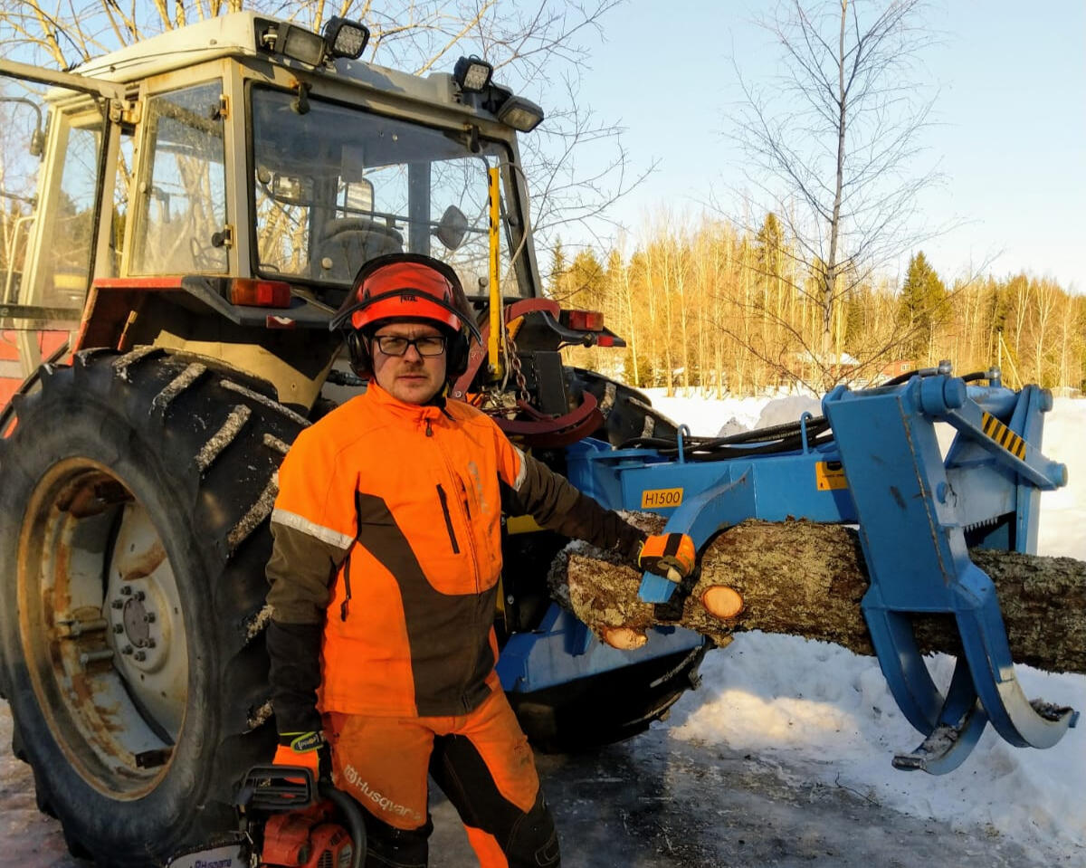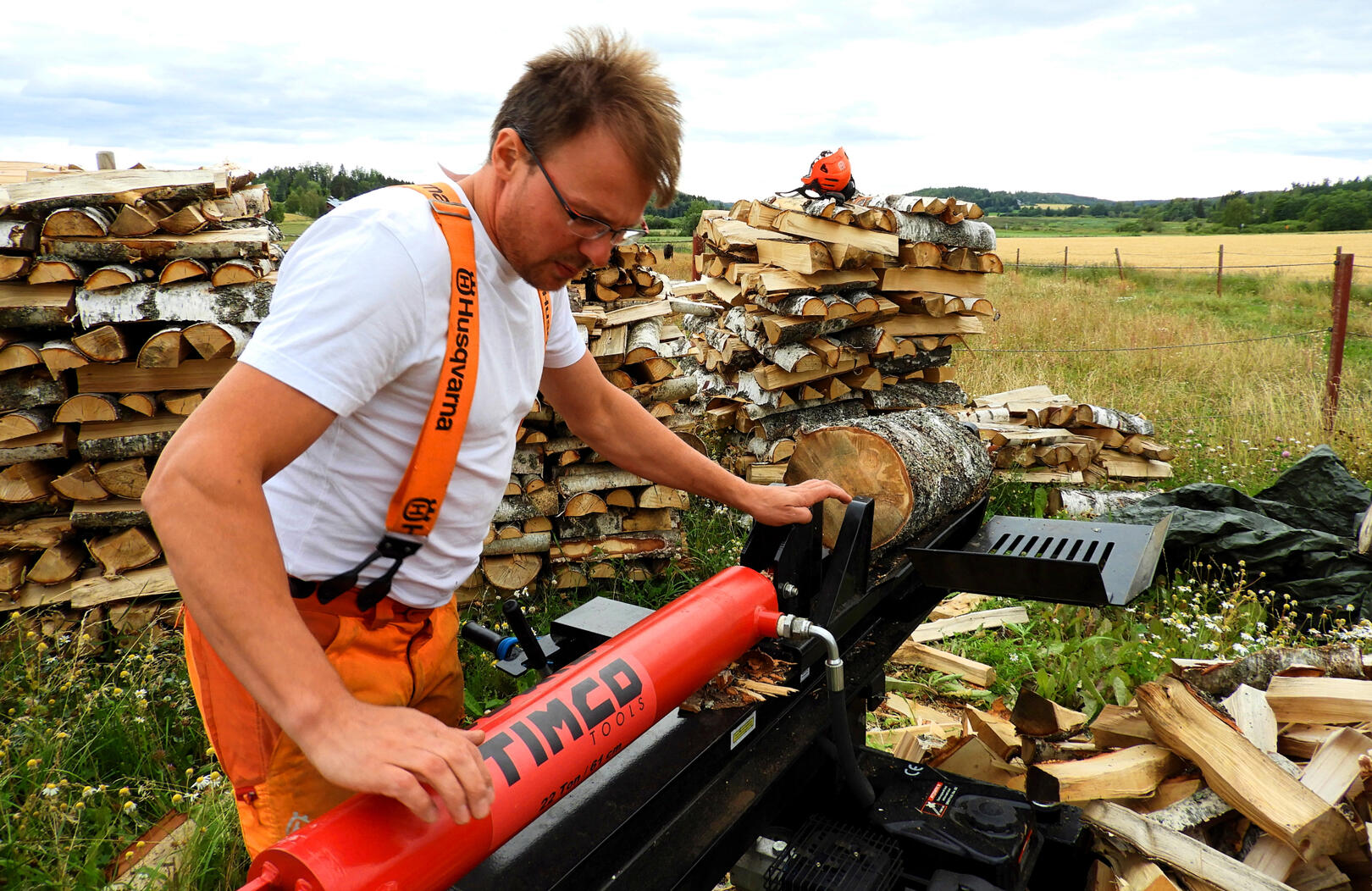 Lisäpalveluina pöllien halkominen koneellisesti polttopuiksi ketterästi paikan päällä tehtynä.